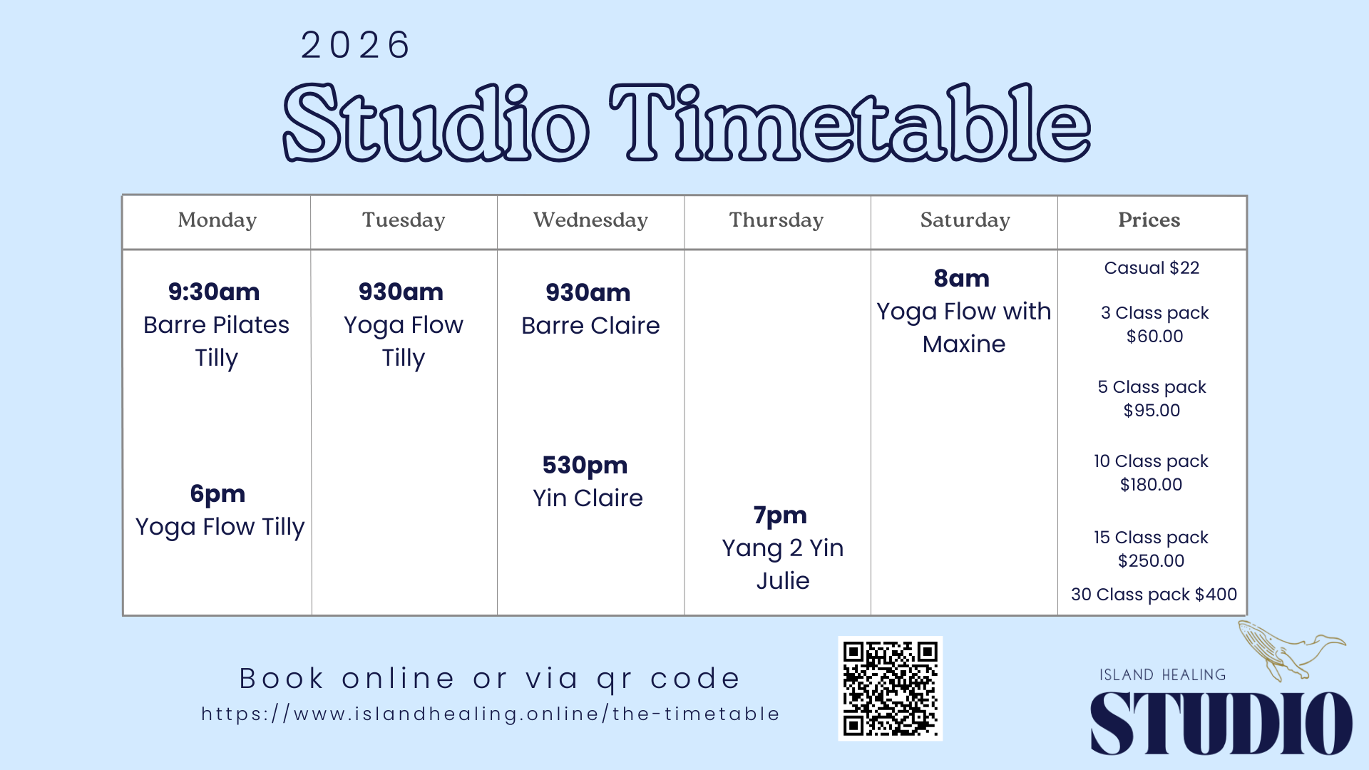 Welcome to the Island Healing Studio, a vibrant community space where you can connect, grow, and thrive on your wellness journey. We offer a diverse range of inclusive classes—ranging from calming yoga and invigorating fitness sessions to sound bowl meditations and many workshops and events—catering to all levels and interests. Our friendly instructors foster a warm and supportive atmosphere, encouraging you to explore what feels right for you. With flexible scheduling throughout the week, it’s easy to prioritise your well-being. Additionally, we offer studio hire for workshops, events, and private classes, providing a perfect setting for your unique needs. Join us to meet like-minded individuals, share experiences, and build lasting friendships. Explore our timetable to find the classes that resonate with you and book your spot today. We can’t wait to welcome you into our community!